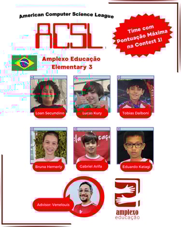 Um dos times do Clube Amplexo Educação atinge pontuação máxima na contest 1 da competição da ACSL (American Computer Science League)